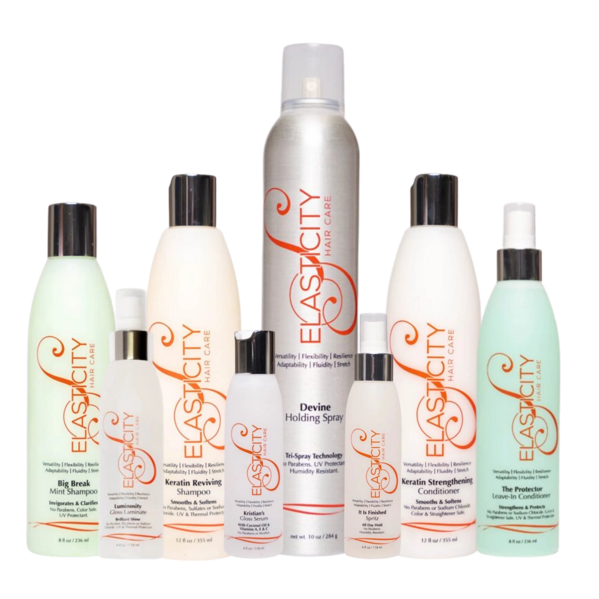 Keratin Shampoo, Keratin Conditioner, Mint Shampoo, Leave-In Protectant, Kristian's Serum, Luminosity Gloss & Divine Holding Spray.